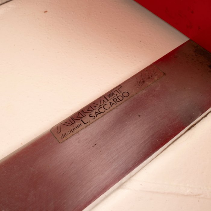 Pensées pour les bureaux comme pour les espaces privés à forte présence visuelle, les chaises Pellicano sont parfaites pour des salons modernes, des galeries, des studios d’architecture ou pour ceux qui souhaitent posséder une pièce de design italien certifiée. La petite plaque d’origine « Arrmet designer L. Saccardo » est toujours présente, attestant de son authenticité et de son origine.