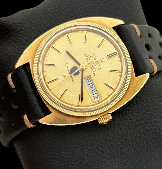 Une très belle montre à collectionner, rarement portée, avec un cadran parfaitement patterné et une médaille en or sur le couvercle. De plus, la lunette est en or massif 18 carats. Le couvercle indique qu’elle a été offerte en cadeau en 1972.
